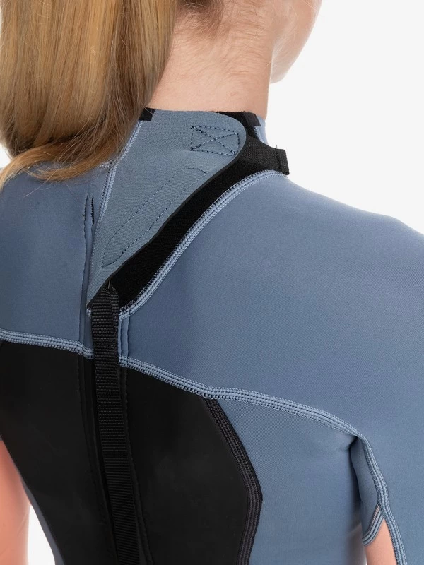 Back zip wetsuit for girls featuring Freemax neoprene on body & legs with Hyperstretch 3.0 on arms & lower leg, a flatlock stitched seams, and rounded out with a back zip entry with YKK® #10 plastic zip.