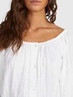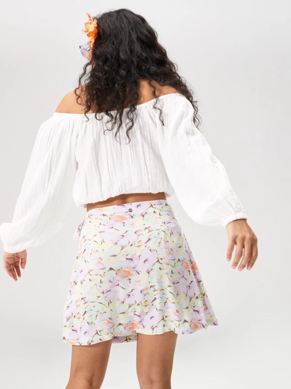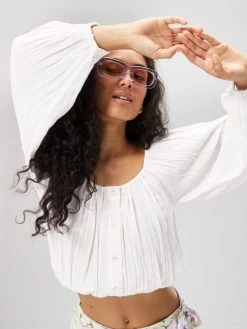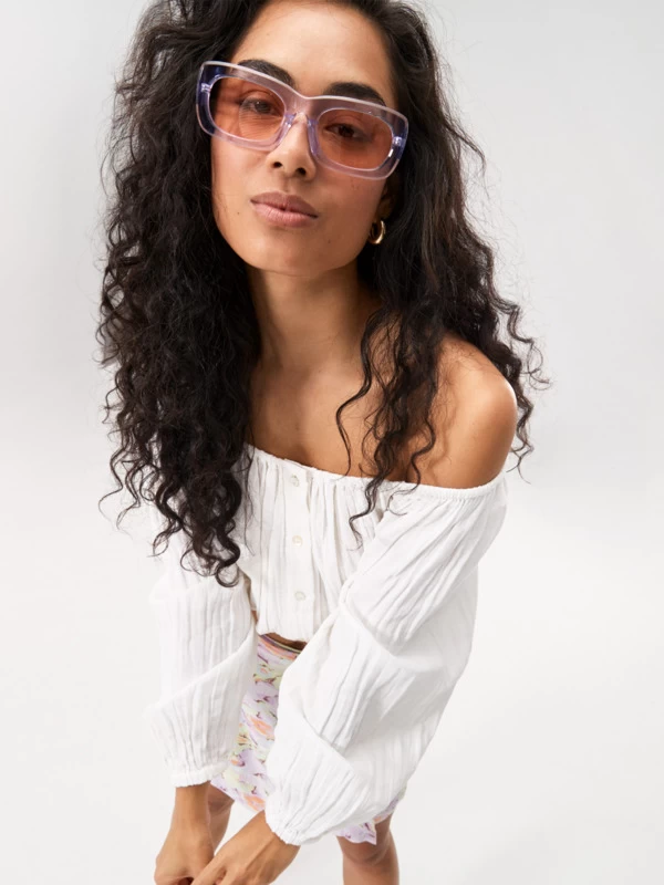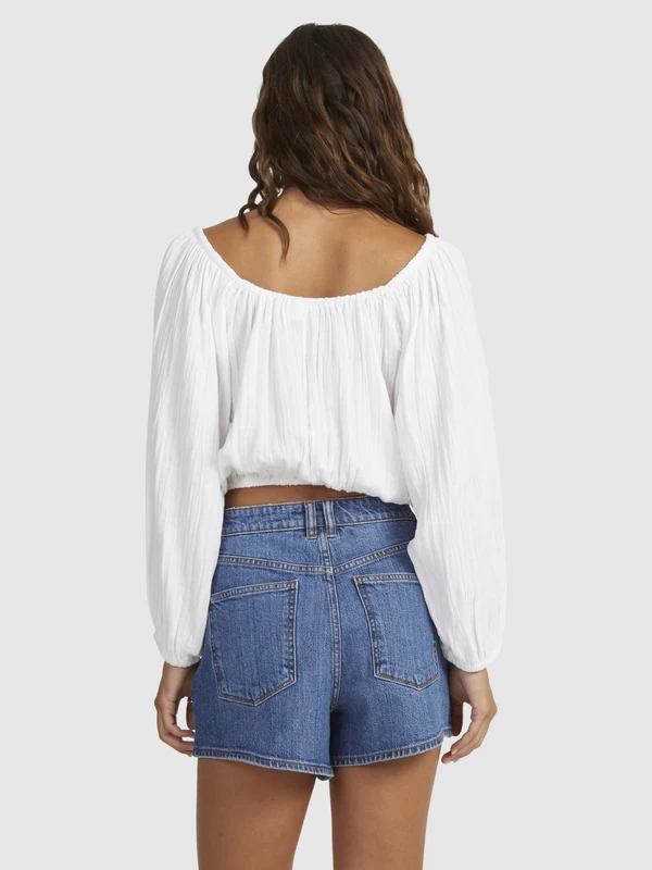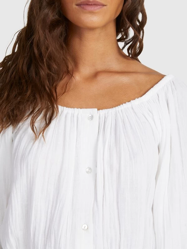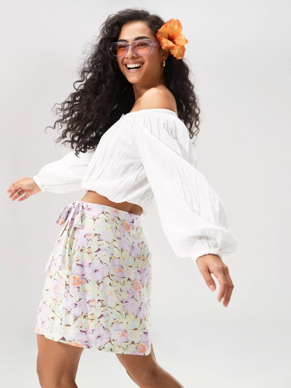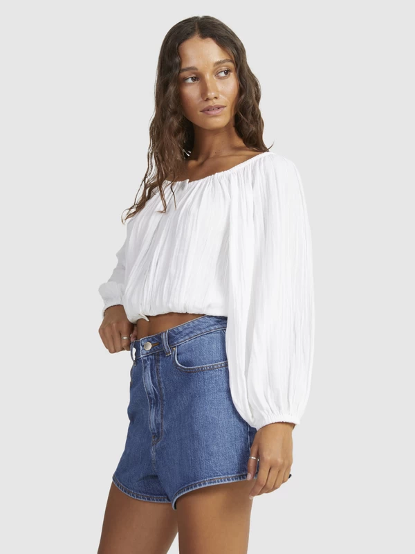 Fit: Flowy, cropped style that can be worn on or off the shoulder