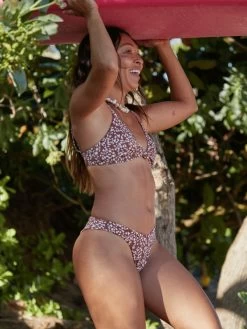 Hipster Bikini Bottoms for Women. Features include: Eco-Conscious Fabric: Soft, strong, recycled, resistant & stretch textured rib nylon elastane blend fabric, Coverage: Hipster, Rise: Mid rise, Branding: ROXY rubber plate.
